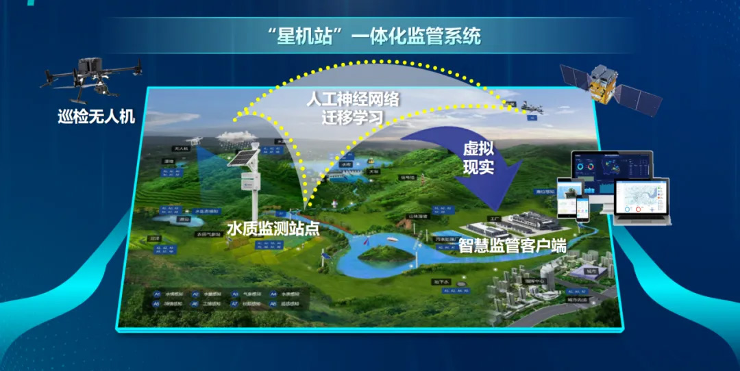“智慧眼”: 系统融合卫星遥感大数据, 搭载定制光谱仪的无人机 与地面水质监测预测 一体化智能系统, 构建全域覆盖的立体AI监测网络, 让污染无所遁形。