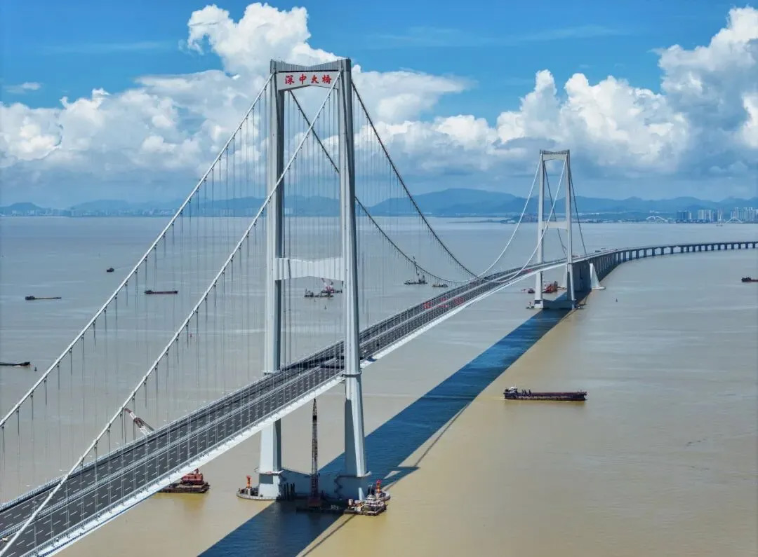 目前, 该技术成果已深度赋能 深中大桥、常泰长江大桥等 世界十大悬索桥、斜拉桥建设, 重塑中国桥梁建造 “工业化、智能化”新范式, 筑牢我国超大跨缆索桥梁 高质量建设技术根基。
