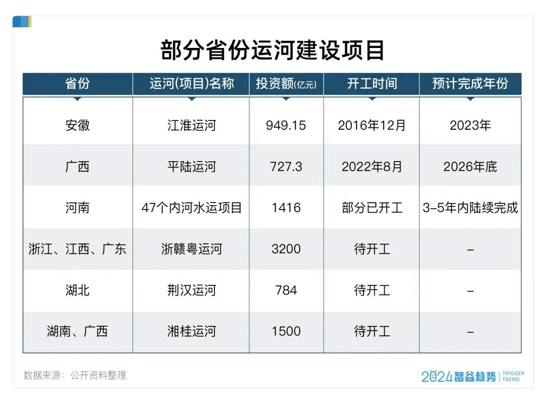 比起铁路,水运投资的增长更令人震撼。 2025年上半年,水上运输业投资增长21.8%,水利管理业投资增长15.4%,全年水利建设投资预计达1.5万亿元,是五年前的两倍。 其中,运河开挖在河南、湖南、广西、江西等8个省份全面展开,背后藏着双重逻辑。